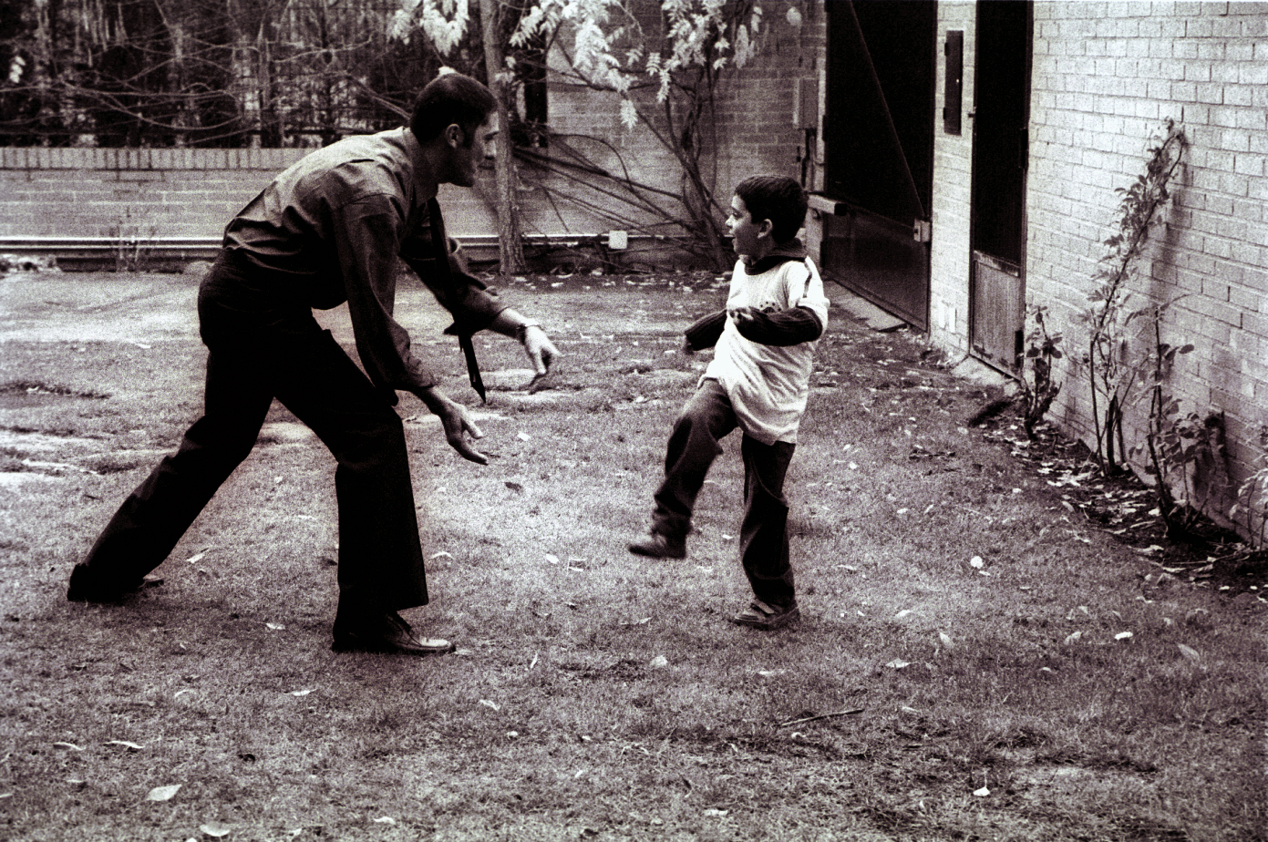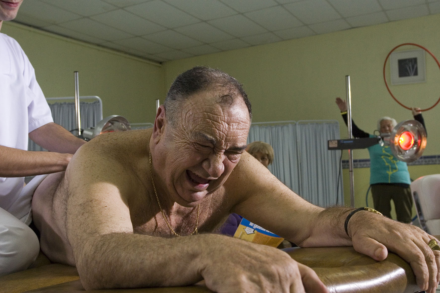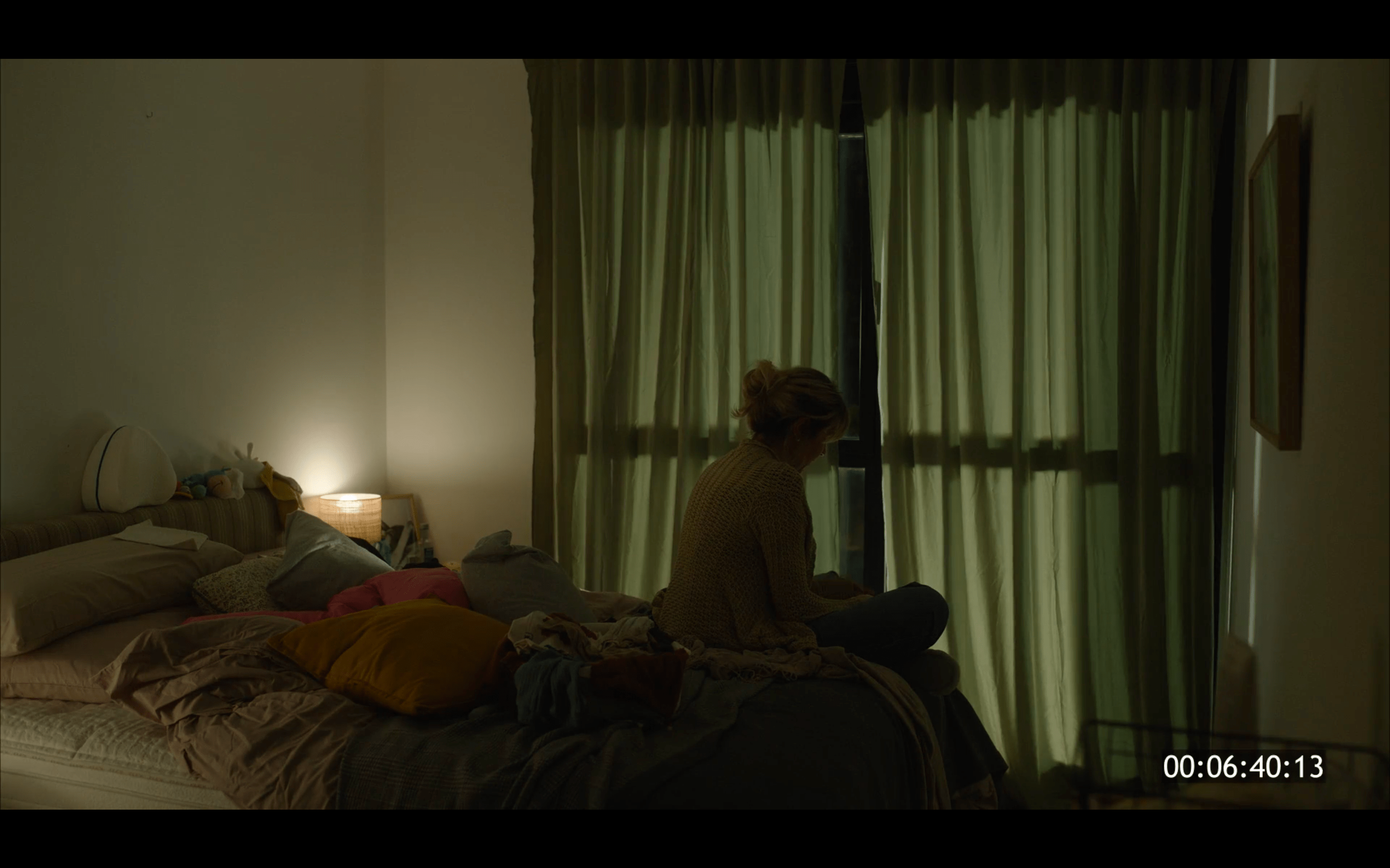 Ella se sienta. Se quita las gafas de sol. Un ojo amoratado. Comienza a jugar con su anillo de casada. Pasa el tiempo. Un tiempo de laxitud en cualquier urbanización a las afueras de Madrid, cualquier mañana de otoño, en cualquier familia.